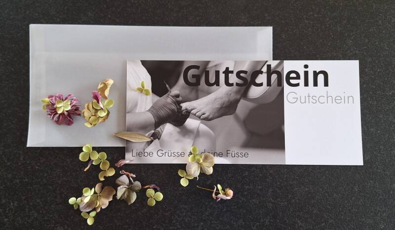 Gutschein für eine Fusspflege mit passender Dekoration.